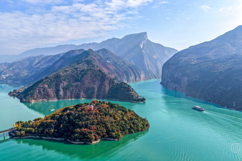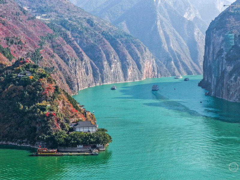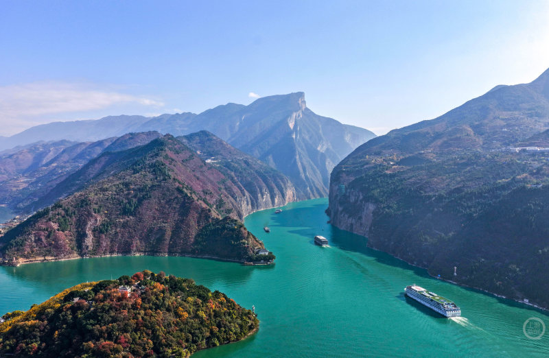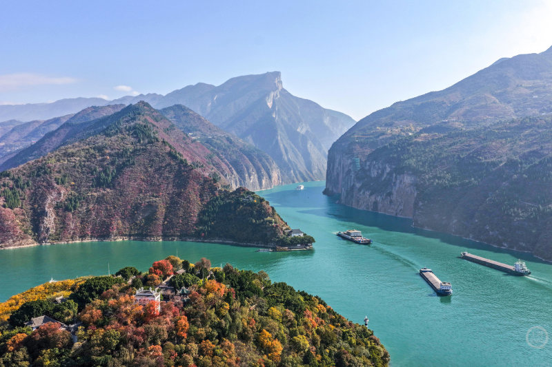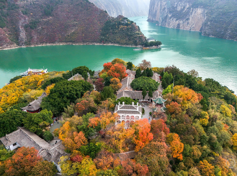 12月14日,重庆市奉节县,冬日的白帝城·瞿塘峡景区层林尽染,构成一幅壮美的山水生态画卷,美不胜收。